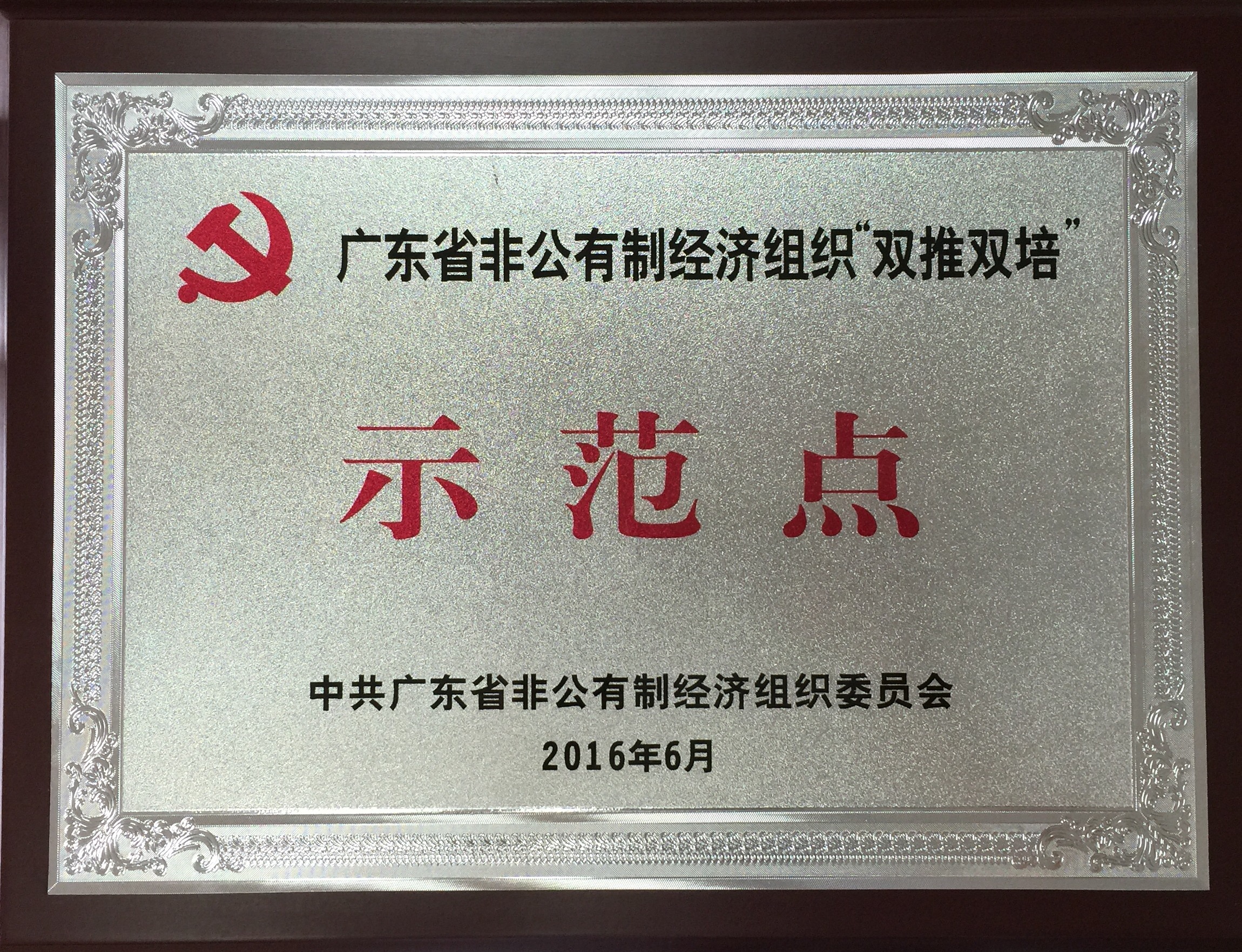 2016年6月,广东省非公有制经济组织“双推双培“示范点””