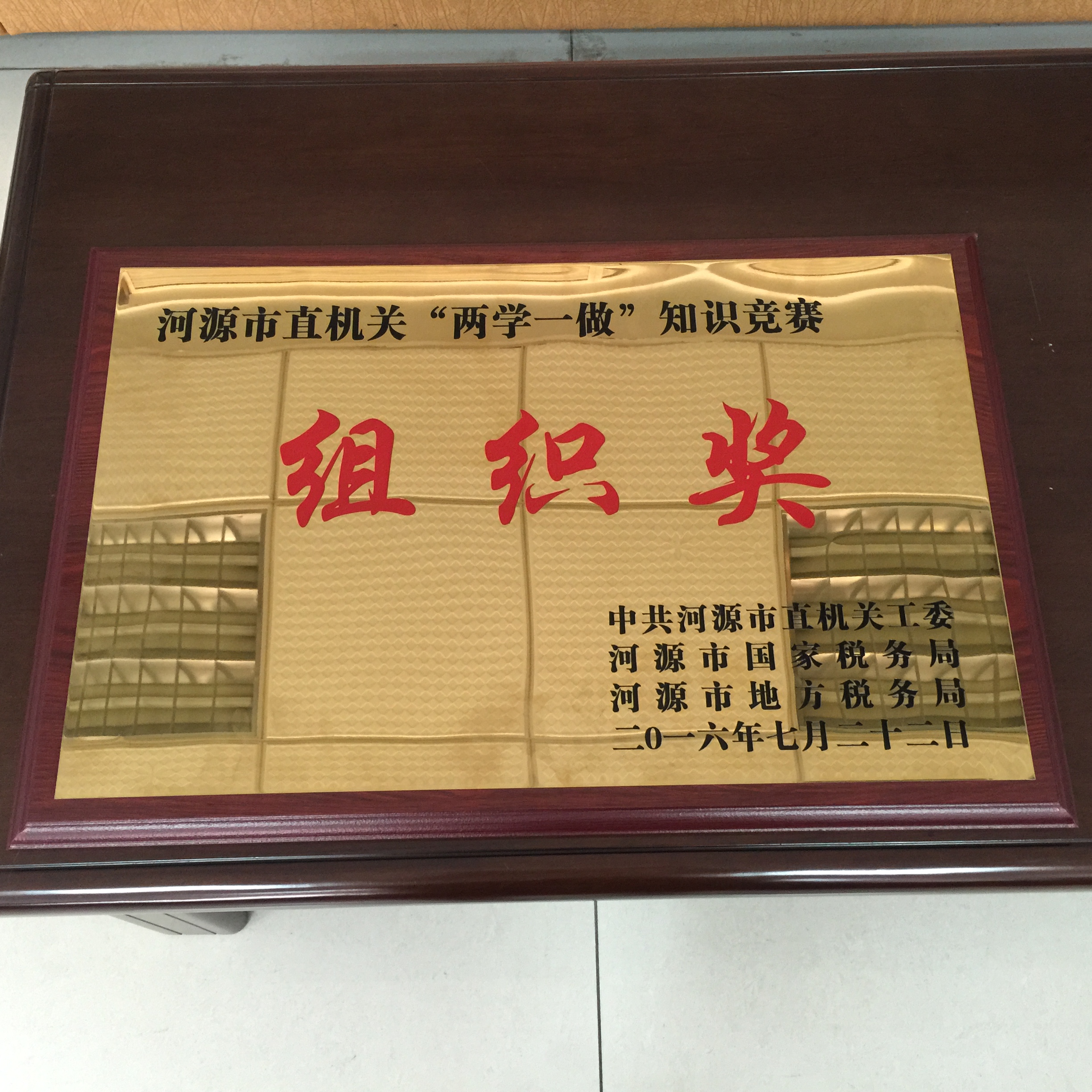 2016年7月22日,河源市直机关“两学一做“知识竞赛”组织奖”