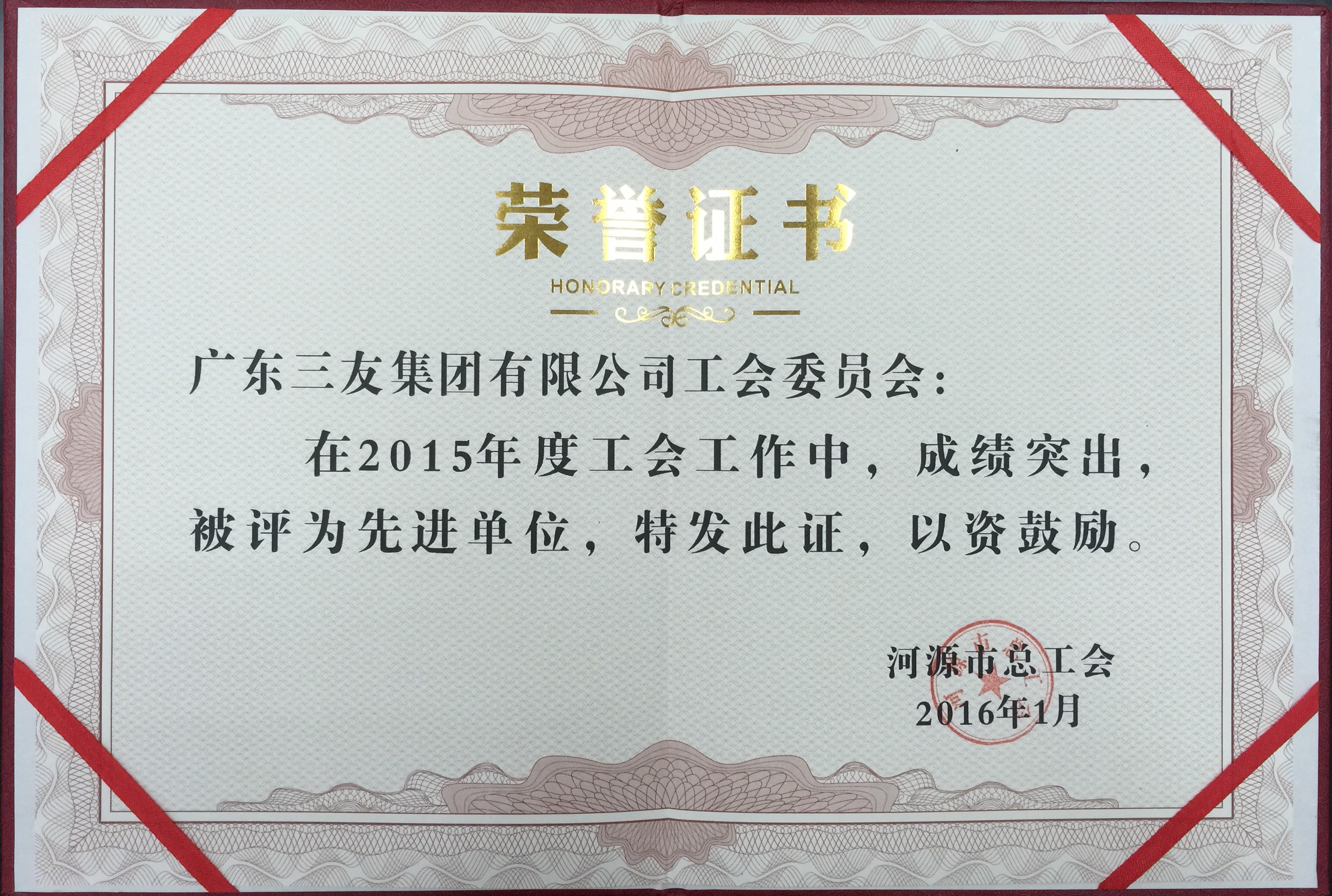 2016年1月,金年会金字招牌诚信集团工会委员会获市先进单位