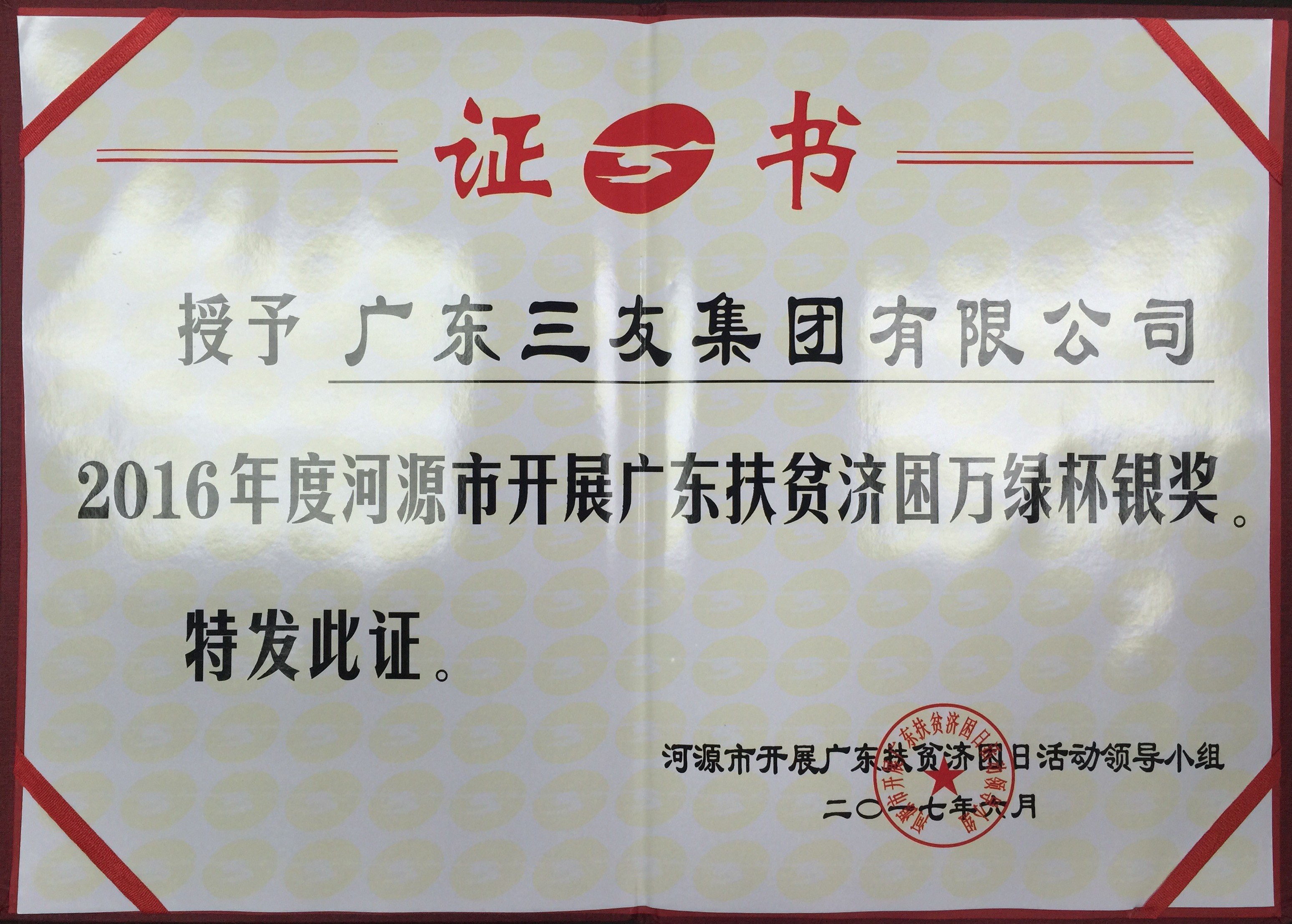 2017年6月,2016年度河源市开展广东扶贫济困万绿杯银奖
