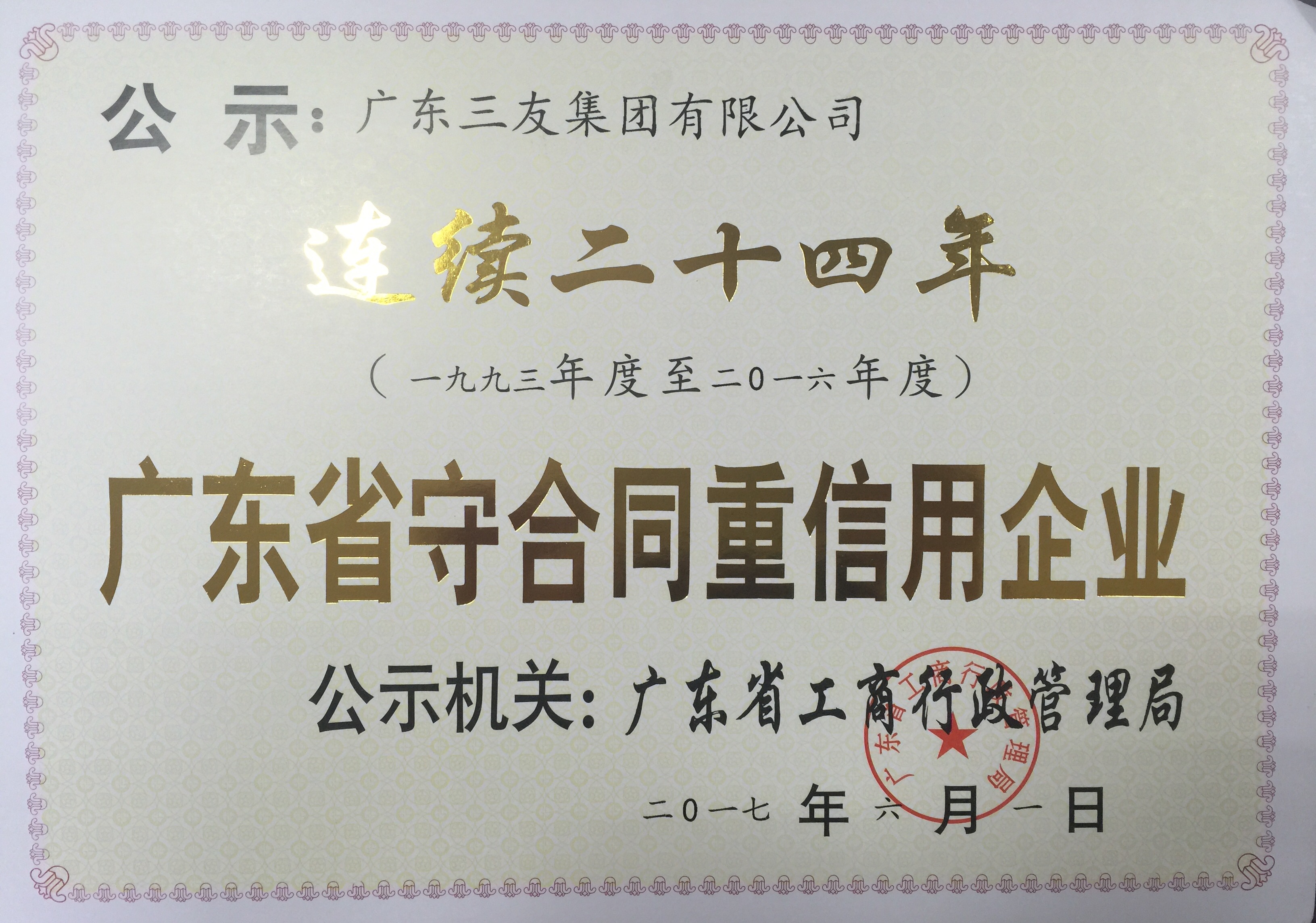 2017年6月1日,广东省守合同重信用企业(连续24年)