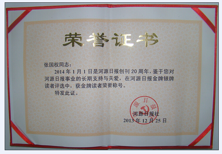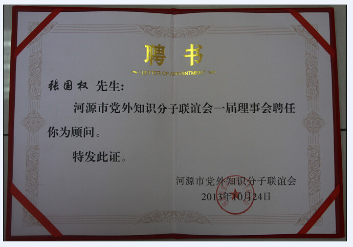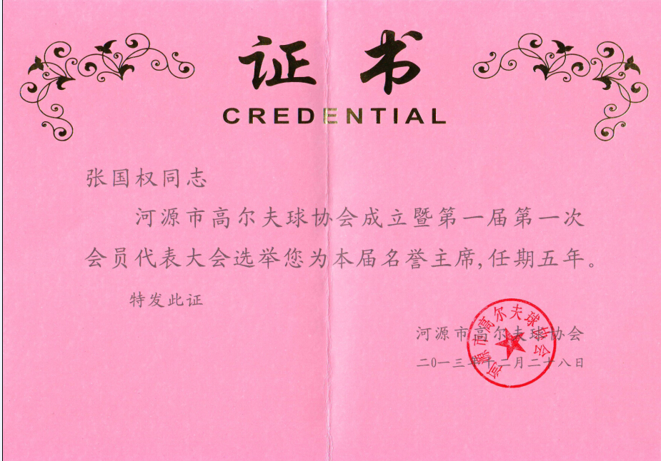 张国权 2013 河源市高尔夫球协会荣誉主席