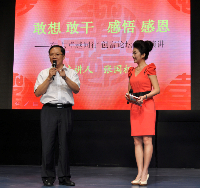 论坛上, 张国权首先发表了题为《敢想、敢干,感悟、感恩》的演讲。他从创业要有充分的思想准备和积累、创业要有面对困难的信心和勇气、创业要积极承担社会责任和义务三方面同大家分享了他二十多年的创业经历,勉励创业青年要有面对的困难的信心与勇气,要有敢想敢干、百折不挠的精神。张国权鼓舞人心的演讲赢得了一阵又一阵雷鸣般掌声,他以回顾、总结自己半辈子人生的“四句头”来结束本次演讲,引起全场轰动,让这次论坛暂告完美段落。