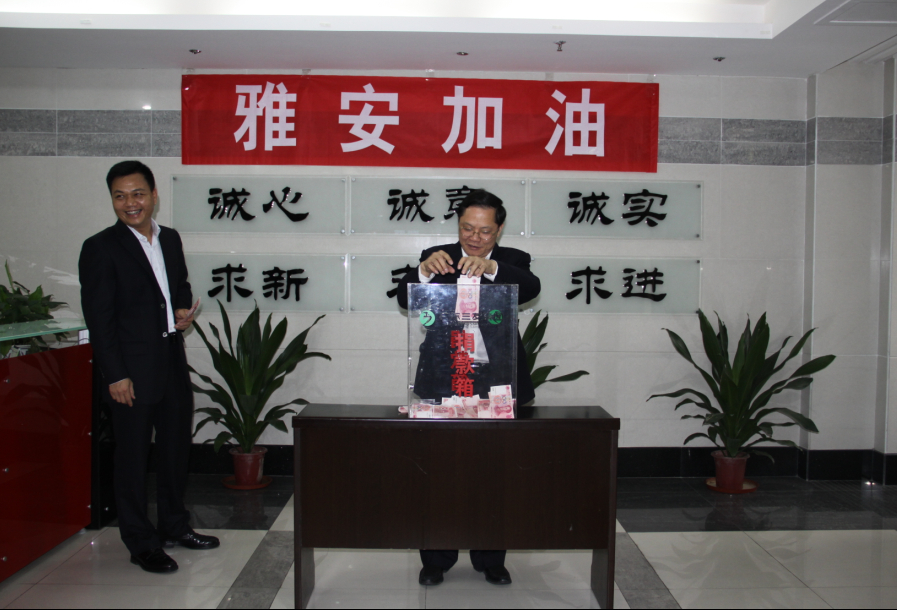 金年会金字招牌诚信集团自4月26日接到河源市慈善总会发出的“向四川芦山地震灾区捐款倡议书”后,就积极动员全体员工踊跃捐款。在4月28日的“向芦山地震灾区捐款”活动现场,共募捐善款266905元,其中金年会金字招牌诚信公司捐款20万元,员工捐款66905元,支援芦山地震灾区人民重建家园。